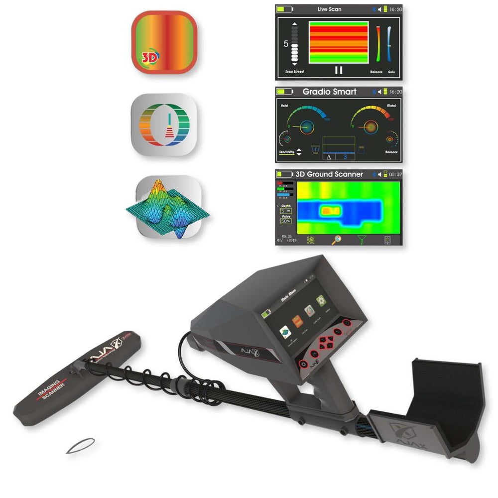 Este dispositivo se proporcionó con una pantalla colorida de alta resolución de 5 pulgadas, le permite trabajar con funciones y programas profesionales avanzados para detectar objetivos subterráneos con control total de las propiedades de escaneo y su viaje de exploración de ruta hasta llegar al objetivo deseado.