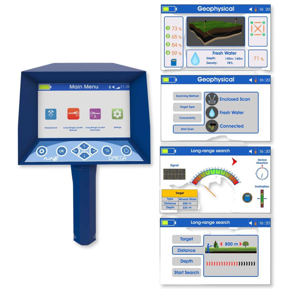 El dispositivo detector AJAX OMEGA está equipado con niveles avanzados de tecnologías para detectar y localizar ubicaciones de agua subterránea con gran precisión. Este dispositivo tiene funciones de alta capacidad que permiten al usuario completar el proceso de exploración de agua en menos tiempo y esfuerzo.