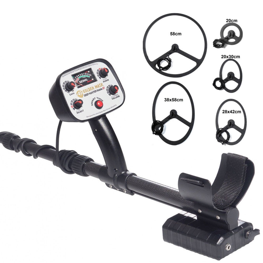 El Golden Mask Deep Hunter Mobile ST es un potente detector de metales de inducción de pulso de una mano. El Mobile ST tiene balance de tierra automático con el mismo sistema Smart Tune, incorporado en el modelo superior Pro AE. Exactamente como con el Pro AE, el Deep Hunter Mobile ST tiene una función de RECHAZO DE BASURA, por lo que el usuario puede elegir sobre qué reacciona el detector: solo objetivos grandes o todos los objetivos. Con esta función, se pueden eliminar pequeños objetivos de basura y el detector reacciona solo con objetivos grandes, lo que lo hace ideal para la búsqueda de reliquias y meteoritos. Mobile ST usa las mismas bobinas que los modelos más grandes Pro 3SE, Pro 5 y Pro AE, por lo que si ya tiene bobinas de búsqueda Golden Mask PI, ¡puede usarlas con Mobile ST! Incluso se podría usar una bobina de marco. El móvil se utiliza para tesoros, acumulaciones, reliquias e incluso monedas. Si planea usar el detector para monedas, consígalo con una bobina de búsqueda pequeña: 20 y 20x30 cm están disponibles como bobinas accesorias y podrían usarse para objetivos muy pequeños y pepitas de oro.