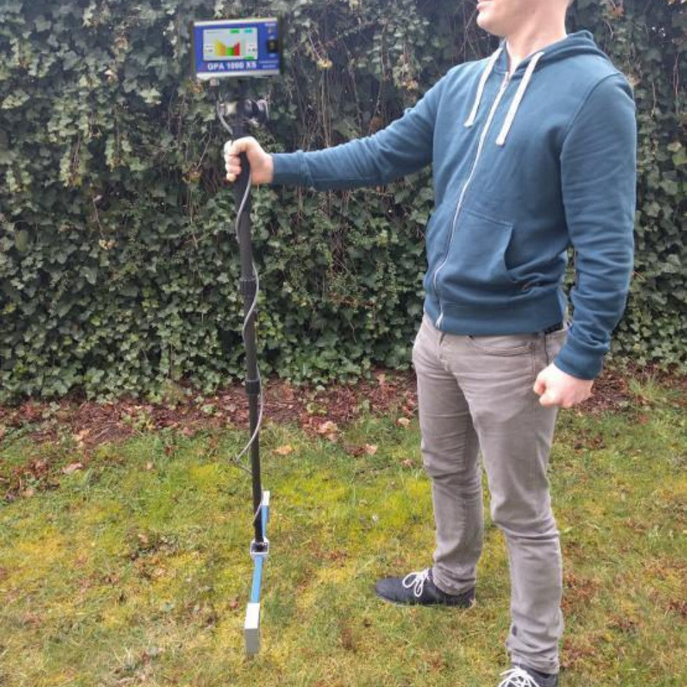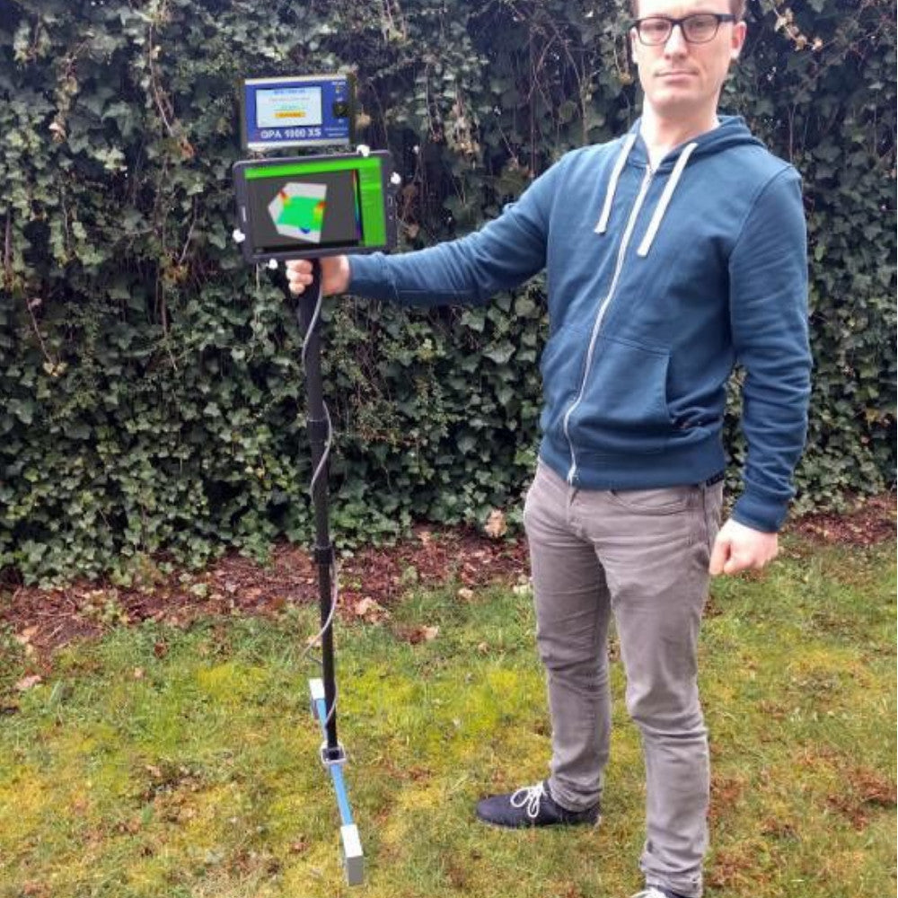 El juego GPA 1000 XS es aplicable en todo tipo de suelo. A través de la medición precisa de los cambios en el suelo, el dispositivo encuentra oro y otros metales y localiza cavidades hasta una profundidad máxima de aprox. 15 metros