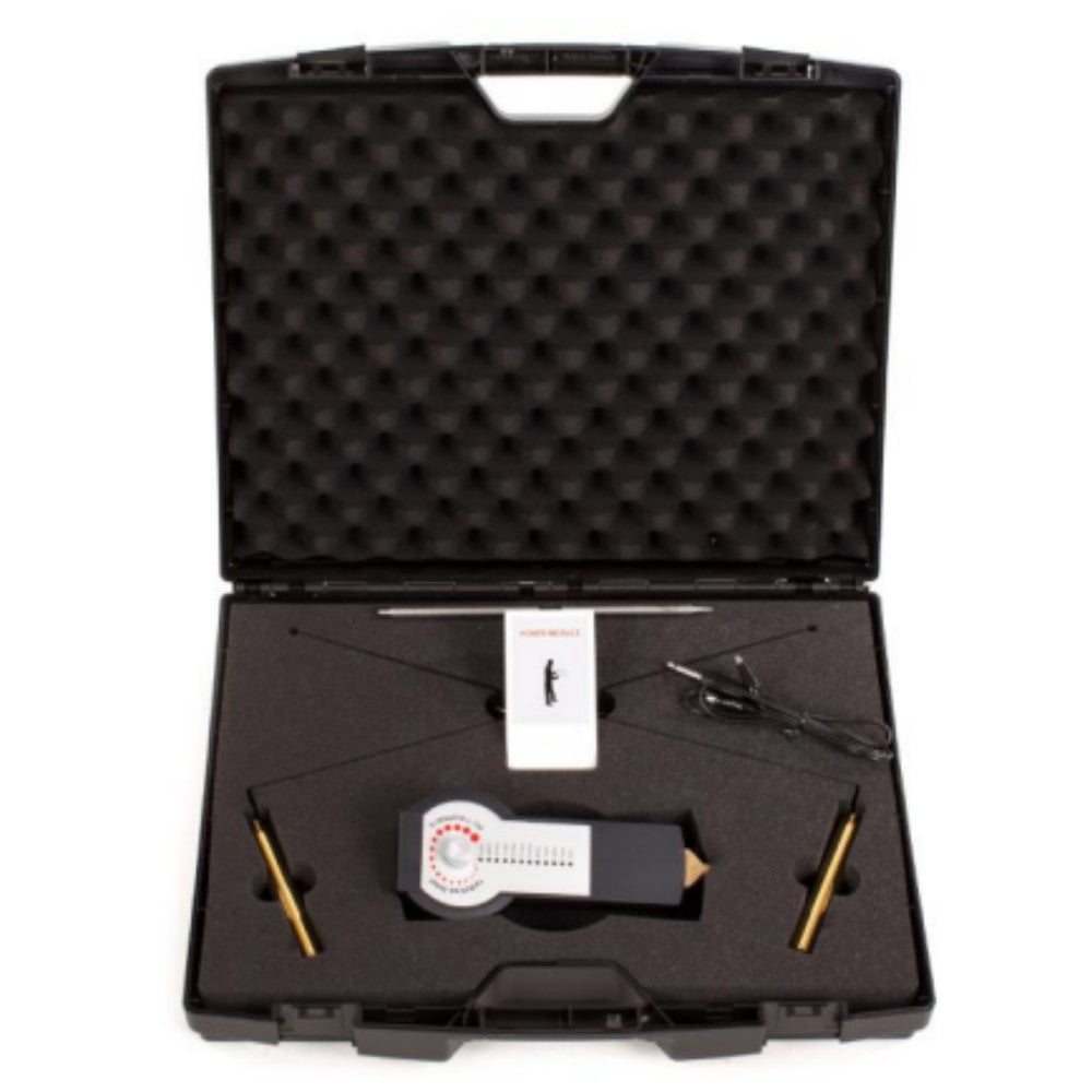 El kit LRL incluye 2 localizadores dorados de largo alcance con estuche de transporte. Nuestro juego de varillas en L bañadas en oro con amplificador para receptor de señal, más el nuevo transmisor Eliminator e-120 B con doble función: detector generador de frecuencia y filtro de rechazo mineral! El precio que ofrecemos del kit LRL es inferior al de cualquier otra unidad comparable, pero el rendimiento es excelente.