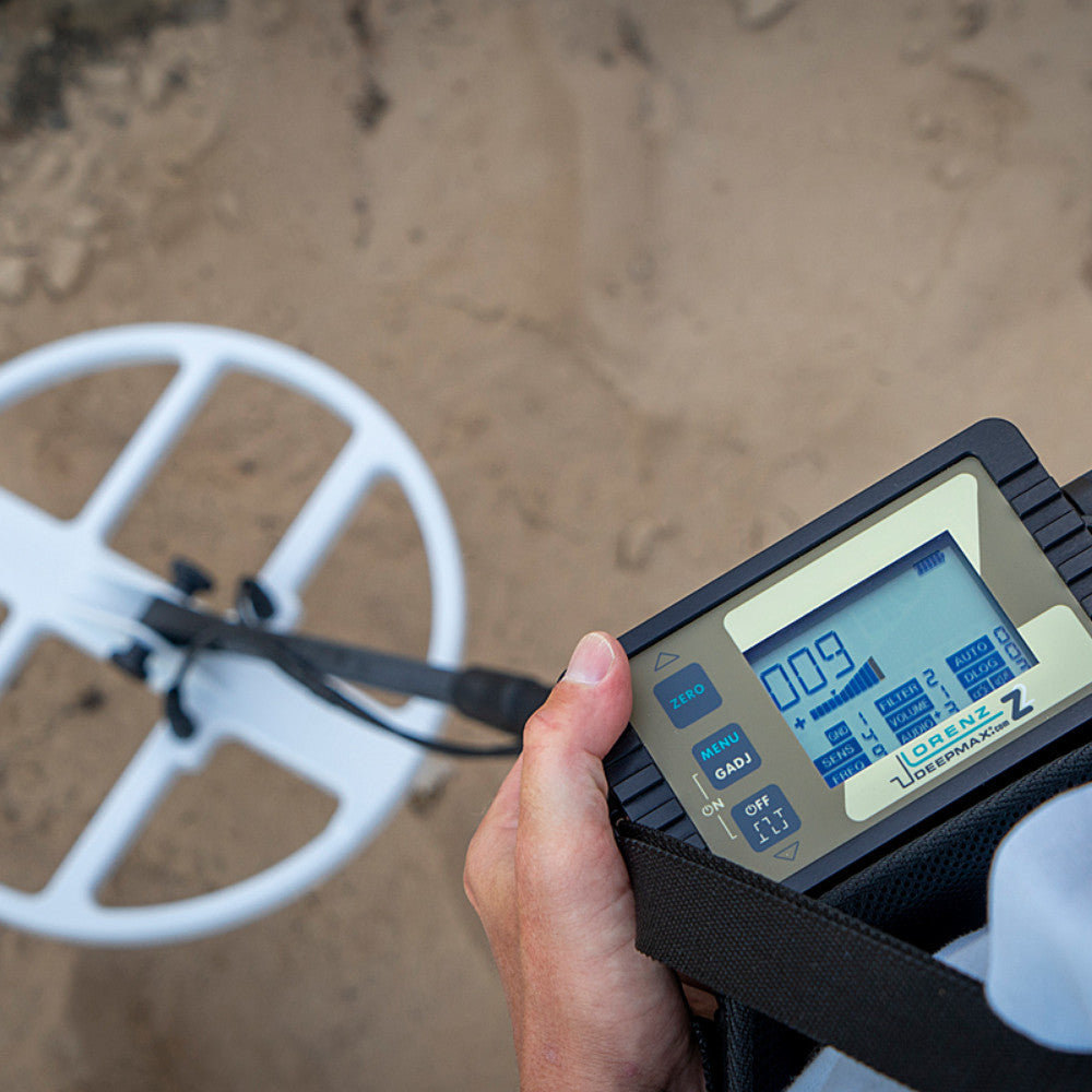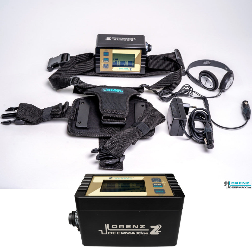 El LORENZ DEEPMAX Z2 es un dispositivo electrónico completamente nuevo, compacto y de diseño resistente. Solo se han utilizado los mejores componentes con este modelo de detector en particular. Se utiliza una carcasa de control con aluminio anodizado mecanizado a partir de una sola pieza de aluminio. Los últimos controladores y convertidores de analógico a digital junto con todas las nuevas soluciones de software hacen del Z2 un dispositivo excepcional. El rango de detección de oro natural y otros objetos de metales no ferrosos se ha mejorado considerablemente. Una cancelación de ruido electromagnético diferencial con nuevos diseños de bobina hacen que este dispositivo sea muy útil en áreas donde hay muchas interferencias de líneas eléctricas. El circuito completo de transmisión y recepción se renovó para lograr aún más estabilidad y sensibilidad.