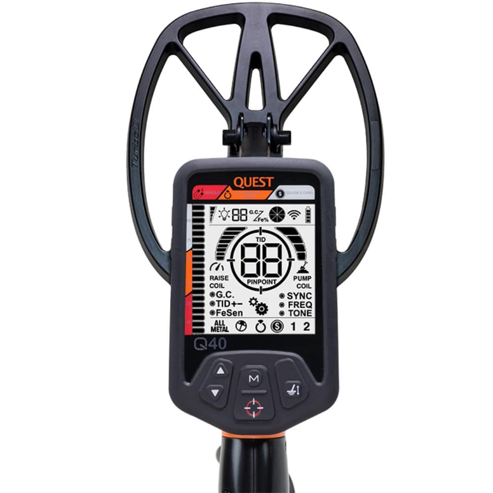 Detector de metales Quest Q40 con detector de metales de alto rendimiento con bobina de búsqueda impermeable TurboD de escaneo ancho de 11 x 9″. Detector de metales para cualquier propósito, de la fabricación americana QUEST. El modelo Q40 tiene una bobina de búsqueda a prueba de agua y es adecuado para la tierra, la playa y las riberas de los ríos. El fabricante se ha centrado en desarrollar y diseñar el producto para las mejores condiciones para el trabajo al tiempo que proporciona un agarre ergonómico y ángulos de agarre cómodos para usar durante todo el día sin esfuerzo innecesario.