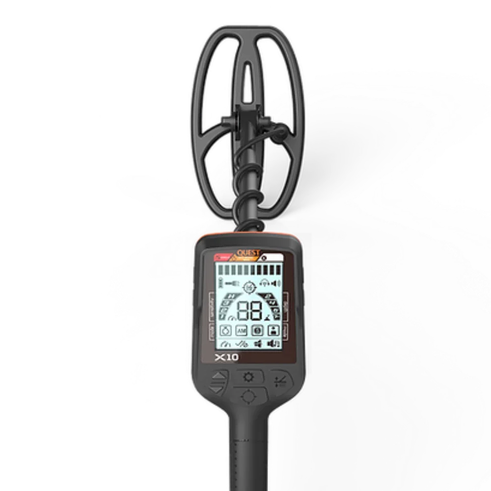 El All-New X10 es tu mejor opción para comenzar este hobby. Viene con nuestra bobina TurboD doble D para un mejor rendimiento para manejar suelos altamente mineralizados o caza en la playa. El MENÚ de funcionamiento extremadamente intuitivo le permite acceder a él sin curva de aprendizaje. Las funciones esenciales incluyen 3+1 modos de búsqueda, ID de objetivo ajustable y 5 tonos.